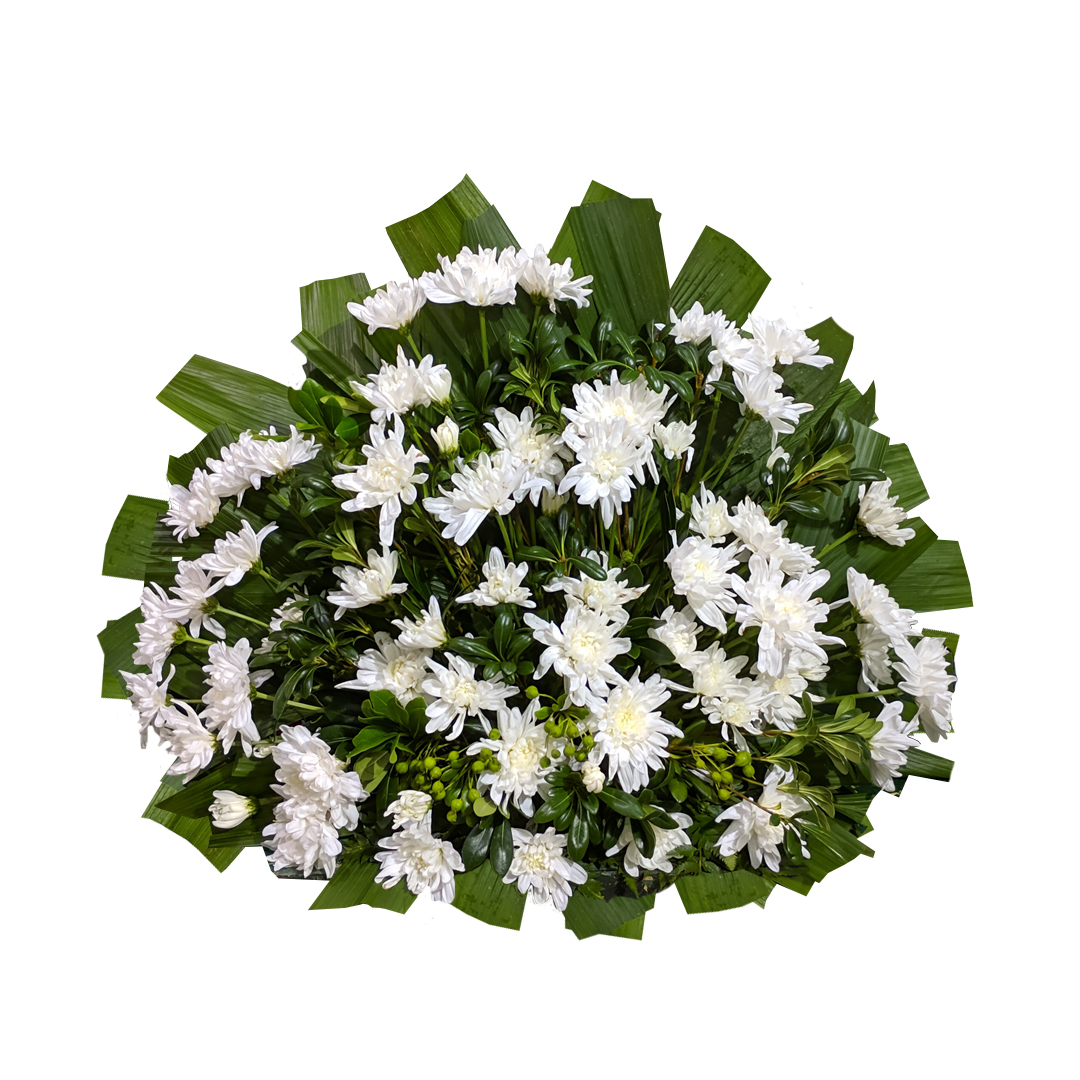 Tufo com Crisâtemos brancos e Folhagem especial. Normalmente vemos em Velórios de pessoas de todas as idades e religiões.